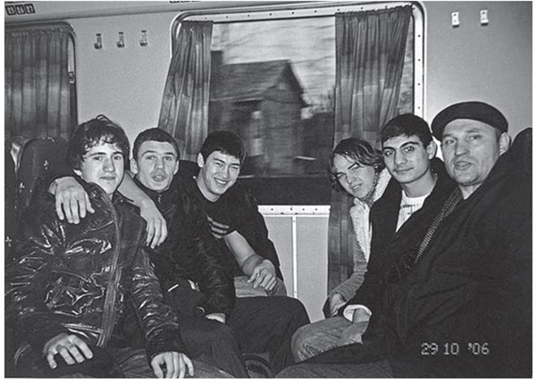 Возвращаясь после соревнований. У окна – Дмитрий Бивол