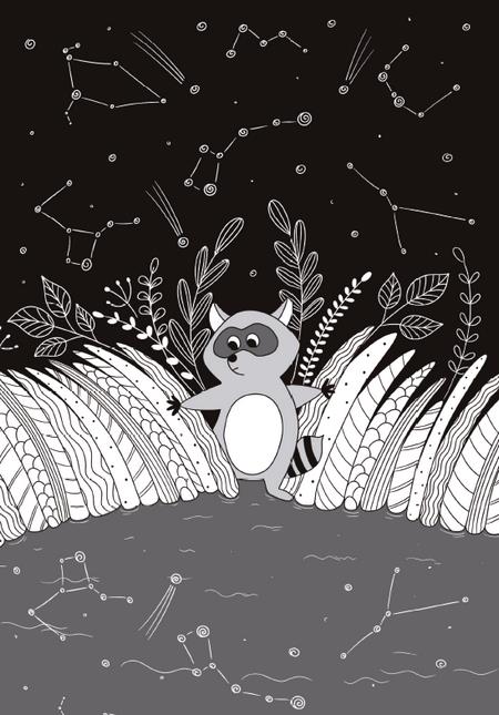 Однажды ночью Мотя увидел что-то совсем невероятное. С неба стали падать звёзды!!! Как такое могло случиться? Их надо обязательно найти. Мотя стал считать, сколько звёзд падало в никуда. Насчитал пять. «Здорово, – подумал зверёк. – Теперь я знаю, сколько мне их надо найти и вернуть на место!» Енот быстро собрался, надел на плечи рюкзачок с питательными побегами растений и отправился в путь. Мама с сестрёнками крепко спали в дупле дуба. Они только что прилегли после сытного ужина на берегу лесного озера. Кстати, упоминание об озере здесь весьма к месту. Мотя заметил для себя, что звёзды падали именно на другой берег озера. Да, теперь он точно знал, куда надо идти.