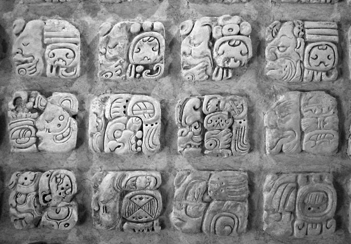 Лепные иероглифы майя, экспонируемые в музее Паленке, Мексика