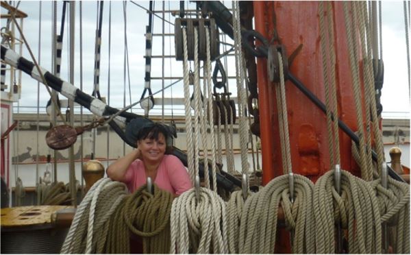 Хочу сказать, что на мостике болтало еще сильнее, чем внизу. Но надо было стойко переносить тяготы и лишения. Я терпела качку и думала: «А если война… надо терпеть». Потом был обед, где командир сделал запись в бортовом журнале о том, что со времен Великой Отечественной Войны, в море на борту военного корабля впервые находится женщина. Все поаплодировали и принялись за еду. Отсутствием аппетита никто не страдал, несмотря на качку. Кроме меня. Я не могла смотреть на еду и делала вид, что не хочу есть. Еле дождалась окончания обеда и опять удрала в каюту.