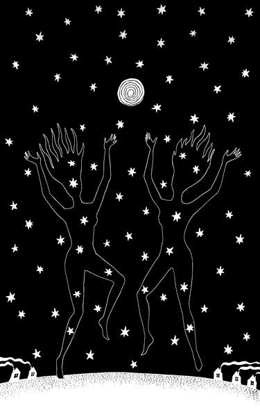 У него не было тела, не было формы, оно не ело, не ощущало, не могло умереть. Оно жило в пещере на заснеженных горах, поросших лесом. В лунные ночи свет проникал через щели вверху, и оно тогда подлетало повыше и смотрело на луну – тогда его почти форма была почти видна и слегка серебрилась, как сгусток пара на морозе. Очень старое, человеки, редко приходившие к пещере с дарами из нижней деревни, несколько раз меняли свой вид, одежды. Но не присматривалось – все равно. Равнодушие. Основным его занятием был снег. Надо устроить снегопад. Оно перемещалось в лесу. Когда находило труп лисы, с кровью из застывшей пасти, птицы или замерзшего охотника с остекленевшими глазами – оно долго смотрело, а потом равномерно покрывало их тела, морды, мех, перья, лица, глаза инеем. Это было красиво – инеем. С ним гораздо лучше.