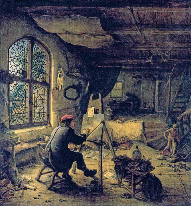 И всё это должен был выслушать терпеливо бедный живописец. Квартальный надзиратель между тем занялся рассматриваньем картин и этюдов и тут же показал, что у него душа живее хозяйской и даже была не чужда художественным впечатлениям.
