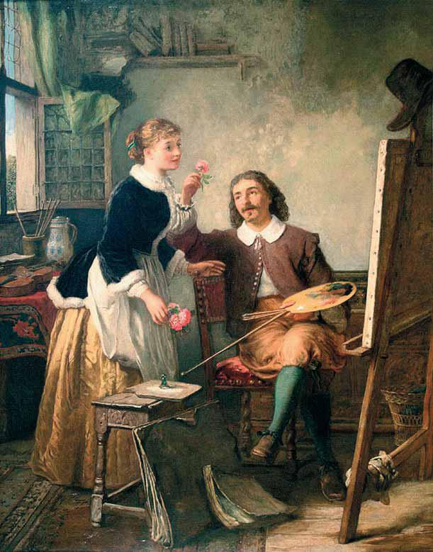 С тайным удовольствием прочитал художник это объявление; лицо его просияло. О нем заговорили печатно – это было для него новостию; несколько раз перечитывал он строки. Сравнение с Вандиком и Тицианом ему сильно польстило. Фраза: «виват, Андрей Петрович!» также очень понравилась; печатным образом называют его по имени и по отчеству – честь, доныне ему совершенно неизвестная. Он начал ходить скоро по комнате, ерошить себе волоса, то садился на кресла, то вскакивал с них и садился на диван, представляя поминутно, как он будет принимать посетителей и посетительниц, подходил к холсту и производил над ним лихую замашку кисти, пробуя сообщить грациозные движения руке. На другой день раздался колокольчик у дверей его; он побежал отворять, вошла дама, предводимая лакеем в ливрейной шинели на меху, и вместе с дамой вошла молоденькая 18-летняя девочка, дочь ее.
