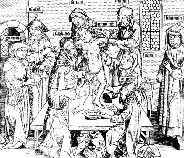 Привели его к королю, который сидел рядом со своей дочерью, и тот спросил его, какой ему ущерб учинился? «Ах, – сказал крестьянин, – лягушки и собаки отняли у меня мою собственность, а резник меня же за это палкой попотчевал», и подробно рассказал, как было дело.