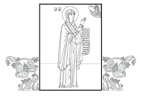 Икос 5Ви́дение чу́дное Богома́тере и святы́я словеса́ Ея́ прие́мля с ра́достным тре́петом, благове́рный князь умиле́нно со слеза́ми паде́ на зе́млю и сла́достно возблагодари́ Всевы́шняго, я́ко сподо́бися узре́ти Тя, Пресвяту́ю Богоро́дицу. Посе́м ускори́ це́рковь заложи́ти, иде́же ны́не Боголюби́вая оби́тель, и́менем Твои́м красу́ющися, мо́лится за весь мир пред пречи́стым Твои́м о́бразом. Созерца́юще в таково́м собы́тии зна́мение благода́ти, дерза́ем воспева́ти си́це: Ра́дуйся, Ми́лостивая, я́ко устро́ила еси́ ти́хое приста́нище и́щущим спасе́ния; ра́дуйся, Пресве́тлая, я́ко свет подава́еши всем хотя́щим жи́ти в преподо́бии и тем показу́еши пра́выя стези́ к Ца́рствию Небе́сному. Ра́дуйся, те́плая Хода́таице о живу́щих в оби́телех Твои́х, ми́лость Свою́ вы́ну им обеща́вшая; ра́дуйся, я́ко в труде́х и́ноческих им всегда́ помога́еши и к трудолю́бию подвиза́еши. Ра́дуйся, я́ко в ке́ллиях мона́шеских на моли́тву вразумля́еши и к доброде́тельному житию́ ре́вностно возбужда́еши; ра́дуйся, Храни́тельнице ди́вная оби́телей святы́х, я́ко Твое́ю благода́тною си́лою о́ныя зи́ждятся и преспева́ют в благоче́стии. Ра́дуйся, Боголюби́вая Цари́це Богоро́дице, Наде́ждо и Прибе́жище на́ше.