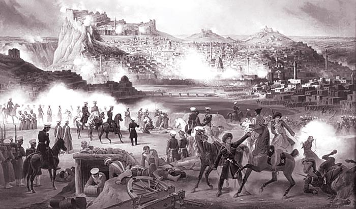 В этот день граф Эриванский, признав необходимым, для продолжения осадных работ, овладеть укрепленным неприятельским лагерем, находившимся на высоте, господствующей над городом, приказал занять его. Храбрые войска наши бросились на штыки и вытеснили превосходного числом неприятеля, с отчаянием защищавшагося. Турки засели в домах форштадта, где произошло столь великое убийство, что одна улица была совершенно завалена грудами трупов.
