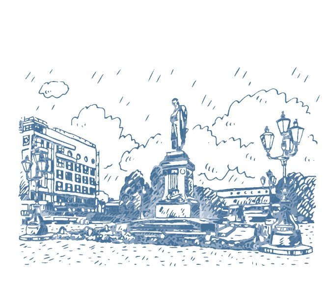 …Вот уж по Тверской Возок несётся чрез ухабы. Мелькают мимо будки, бабы, Мальчишки, лавки, фонари, Дворцы, сады, монастыри, Бухарцы, сани, огороды, Купцы, лачужки, мужики, Бульвары, башни, казаки, Аптеки, магазины моды, Балконы, львы на воротах И стаи галок на крестах.Отрывок из романа «Евгений Онегин», 1832