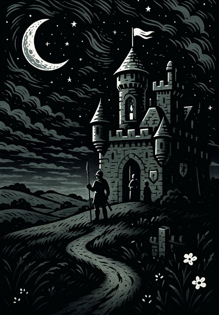 Средь раздолья степи,Где разгулье ветров,Замок старый стоитБез дверей и замков.Проживает в том замкеЕдинственный страж,Что, живя в полумраке,Рисует пейзаж.Любит он наблюдатьЗа охотой скопы́На реке, что находитсяВ трети вёрсты,Любит степь, любит ветер,Верит и ждёт,Что хозяин однажды обратно придёт.Только он не вернётся,Убитый давно.Вечерами страж ставитСвечу на окно,Всё надеясь, что сей тусклый светВ дом поможет вернутьсяИ спасаться от бед.