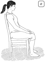 → Сидя, опирайтесь спиной на спинку стула, и, если необходимо, подложите валик (небольшую подушку) на уровне поясницы.