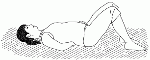 Исходное положение: лежа на спине, ноги согнуты в коленях, стопы стоят на полу, руки вытянуты вдоль тела.