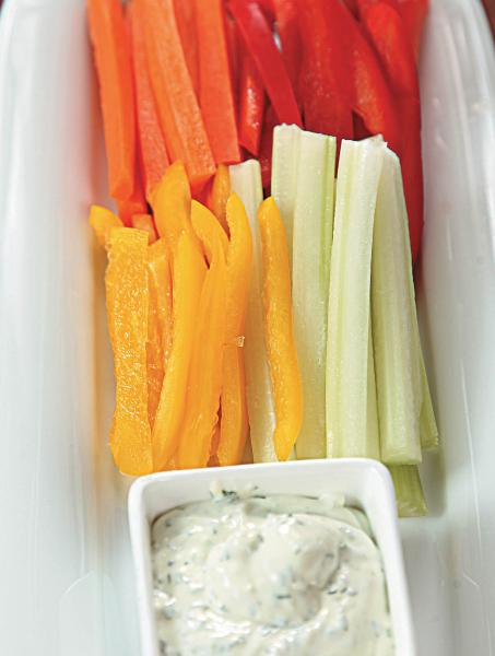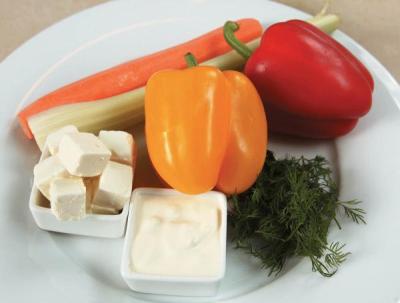 Палочки из свежих овощей с пикантным сырным соусом