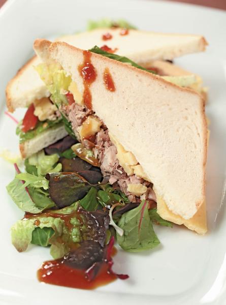 Сэндвич с тунцом, зеленым салатом и сыром чеддер