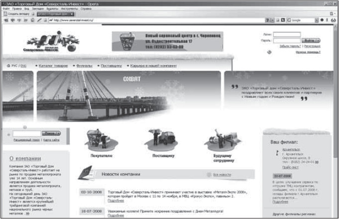 Перед веб-разработчиком представителями ЗАО «Торговый Дом «Северсталь-Инвест»» была поставлена задача обеспечить поддержку взаимодействия с клиентами и поставщиками по всей территории России.