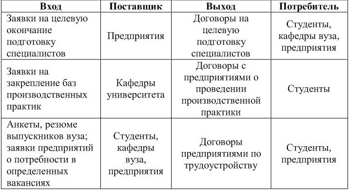 Обучаясь в университете, студент выполняет конкретный производственный заказ (проект) и решает конкретную задачу предприятия. В финансировании проекта на договорной основе принимают участие предприятие и ФГБОУ ВПО «КНИТУ». Процессы входа-выхода проектно-деятельностного обучения приведены в табл.1.1.