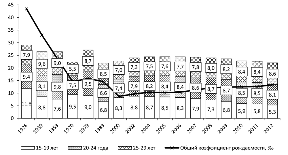 Рождаемость, на 99 % определяющая воспроизводство населения, формируется в результате взаимодействия структурных и поведенческих факторов [20], общепопуляционные тенденции которых имеют характер, лимитирующий ее рост [11, с. 143–153]. Рассмотрим их в молодежной группе.