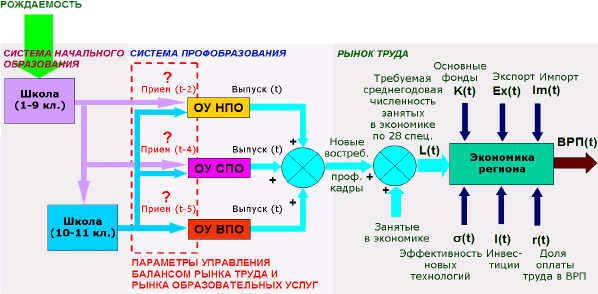 Рисунок 1. Структурная модель динамической системы «экономика – рынок труда – профессиональное образование» [7]