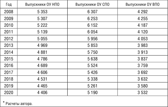 После вычисления коэффициентов ротации оценка потребностей экономики в выпускниках системы профессионального образования рассчитывалась по формулам: