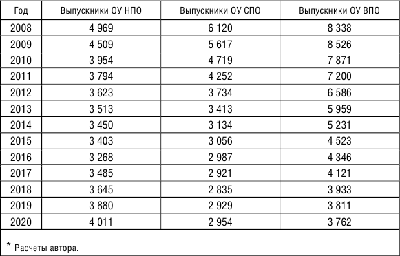 Таблица 4. Прогноз* численности выпускников системы профессионального образования Вологодской области, чел.