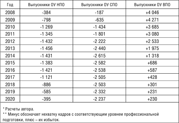 > нехватка выпускников с начальным и средним профессиональным образованием и переизбыток выпускников с высшим профессиональным образованием – на протяжении всего периода прогнозирования;
