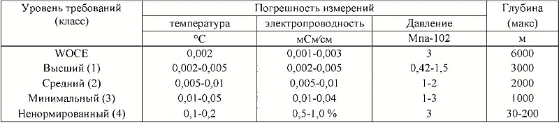 Таблица 1. Классификация океанологических приборов по точности установленных на них датчиков (взята из работы Левашова Д.И., 2003)