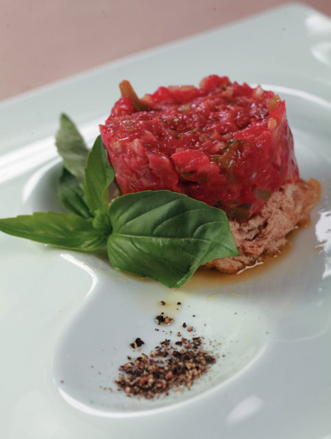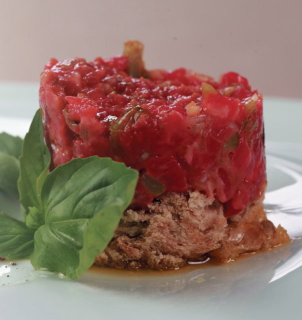 Тартар из говядины с баклажанной икрой