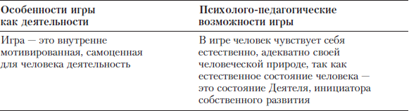 Итак, соотнесем особенности игры как деятельности и ее психоло-го-педагогические возможности.