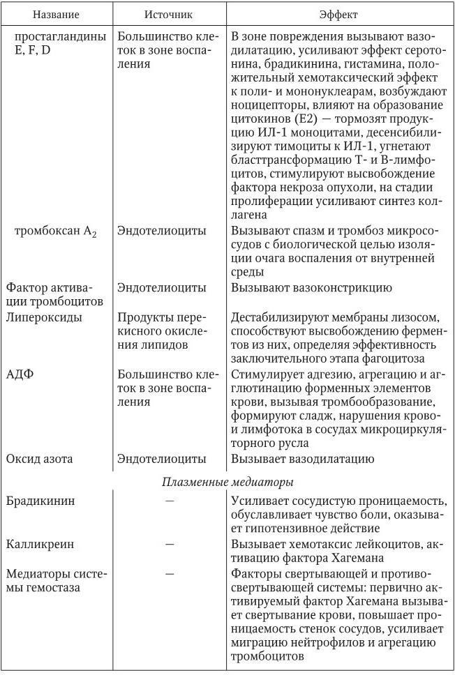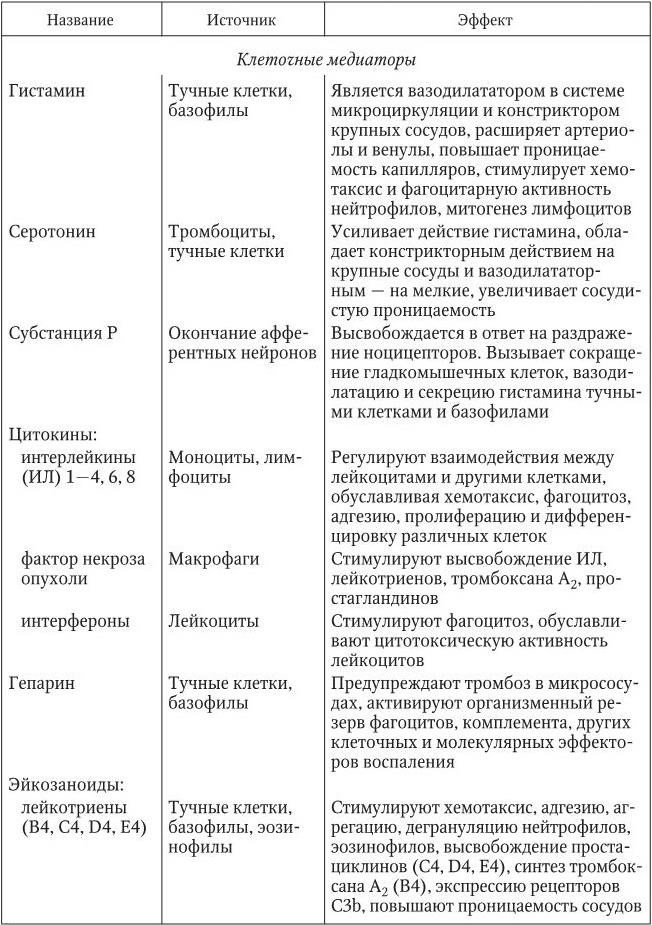 Медиаторы воспаления имеют как вне-, так и внутриклеточное происхождение и характеризуются определенными функциями (табл. 1).