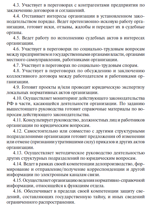 Деятельность же крупной организации нельзя представить без юридической службы. Ее размер ее может варьироваться в зависимости от потребностей организации.