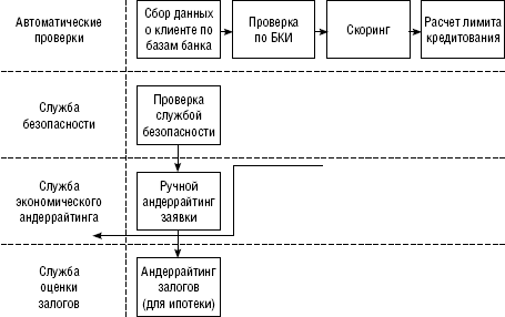 • автоматические проверки: бюро кредитных историй, проверка по базам данных, скоринг;