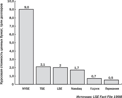 Фондовые биржи есть в большинстве столиц мира, и вы, наверное, уже хорошо знаете многие из них, включая биржи развивающихся рынков. Иногда биржи привязаны к конкретным городам, иногда нет. К примеру, в США фондовые биржи есть в Бостоне, Чикаго, Цинциннати, Нью-Йорке и Филадельфии. Помимо этого существует NASDAQ AMEX – объединение двух самостоятельных рынков, слияние которых произошло в октябре 1998 года. До этого система NASDAQ считалась ведущим электронным фондовым рынком мира, а AMEX была второй по величине торговой площадкой в США. В Европе фондовые биржи иногда называют французским словом bourse, например, Парижская фондовая биржа звучит как Paris Bourse.
