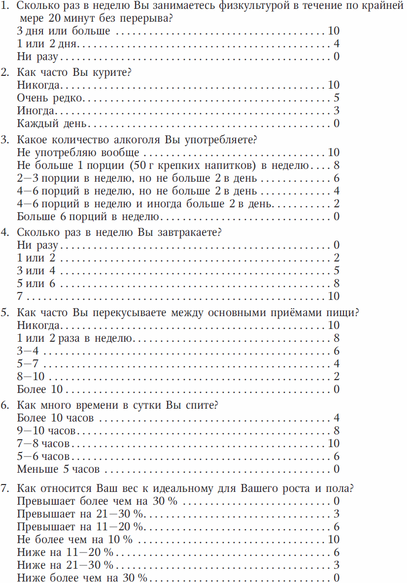 Меньше 30 очков: Вы серьёзно пренебрегаете своим здоровьем; без всякого сомнения, Вы заслуживаете лучшего к себе отношения.