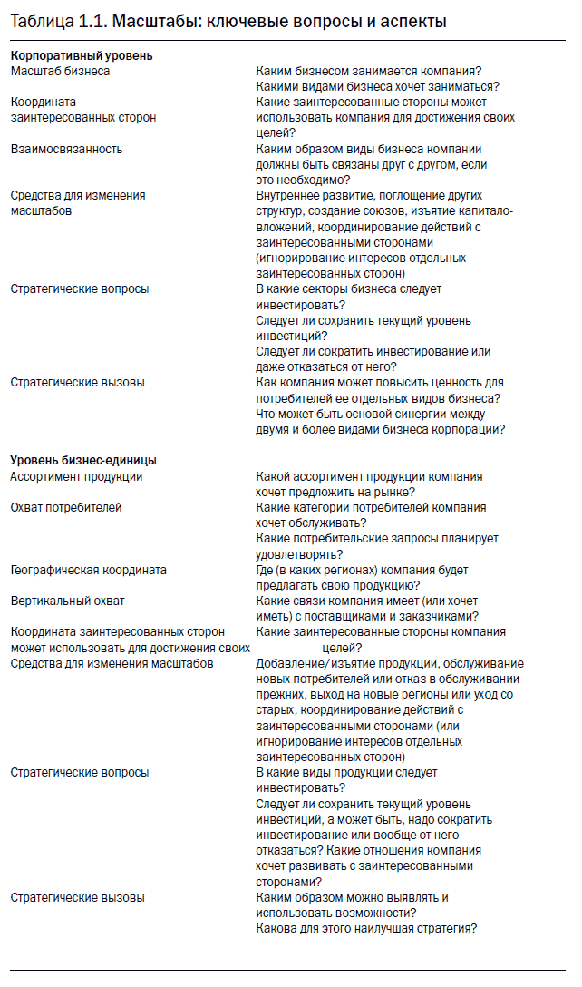 Вопросы и варианты действий, связанные с масштабами, обликом и целями, рассматриваются практически во всех главах этой книги. Поскольку они очень важны для понимания сущности стратегии, обсудим их здесь, хоть и очень кратко.