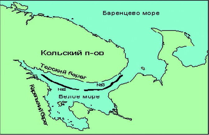 Рис. 5. Карта-схема расположения учётных трансект в Белом море в марте 2007 года