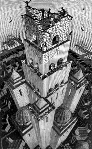Вавилонская башня. Гравюра М. Эшера. 1928 г.
