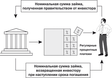 В наиболее простой форме облигации и векселя представляют собой письменное подтверждение обязательства вернуть (IOU) основную (номинальную) сумму займа, предоставленную инвесторами правительству на определенное время – срок погашения. Сумма займа выплачивается полностью при наступлении срока погашения. За предоставление денежных средств в долг инвесторы получают фиксированный или плавающий процент, называемый купонным платежом. Купонные платежи производятся обычно раз в год или полгода.