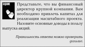 Мы рассмотрели взаимосвязь между риском и размером вознаграждения за него с точки зрения инвестора. Попробуйте теперь самостоятельно взглянуть на проблему с точки зрения эмитента.