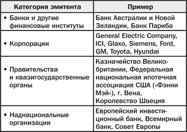 В таблице представлены четыре основные категории существующих эмитентов.