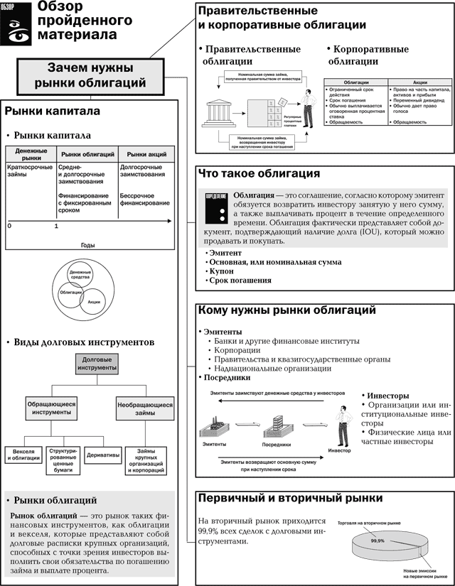 • краткую характеристику участников рынка облигаций, а также первичных и вторичных рынков, на которых они действуют;