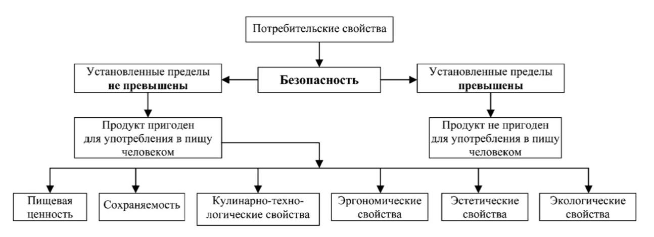 Важнейшим потребительским свойством продовольственных товаров является их безопасность. “Безопасность пищевой продукции – состояние пищевой продукции, свидетельствующее об отсутствии недопустимого риска, связанного с вредным воздействием на человека и будущие поколения. Вредное воздействие на человека пищевой продукции – воздействие неблагоприятных факторов, связанных с наличием в пищевой продукции контаминантов, загрязнителей, создающих угрозу жизни или здоровью человека, либо угрозу для жизни и здоровья будущих поколений” (ТР ТС № 021/2011 “О безопасности пищевой продукции”).