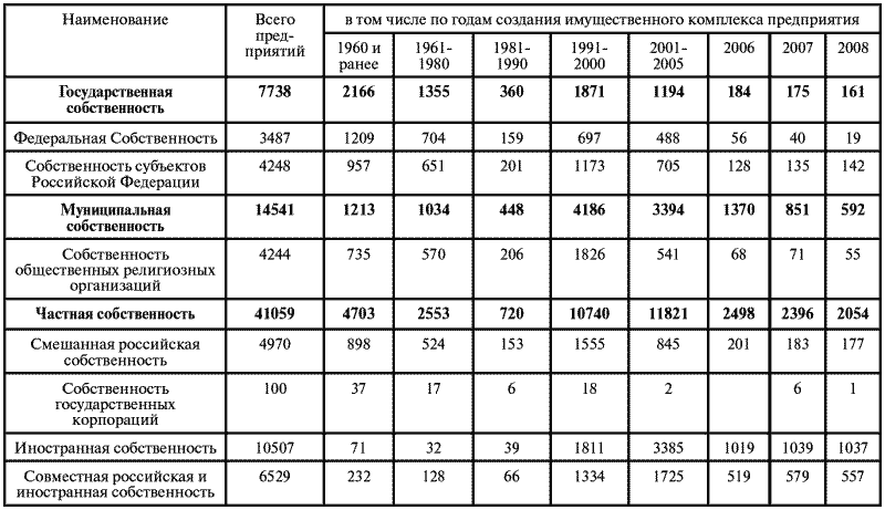 В Таблице 2. представлена информация о предприятиях по формам собственности в РФ