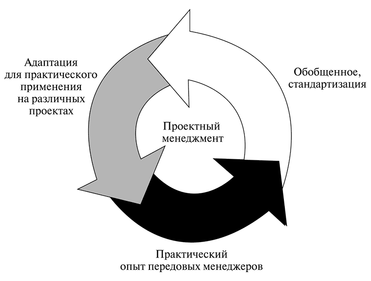 Первые разработки в области проектного менеджмента появились вследствие необходимости решения конкретных практических задач управления сложными, масштабными проектами и программами. И сегодня развитие методов и инструментов управления проектами опирается на практический опыт. Важную роль в развитии дисциплины управления проектами играют процессы накопления лучших практик, их обобщения и стандартизации. Однако для применения методов и инструментов управления проектами в различных отраслях и на конкретных проектах менеджерам приходится их дорабатывать и адаптировать, что, в свою очередь, ведет к разработке новых методик и инструментов.