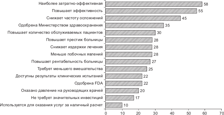Рис. 1.1. Частота упоминания наиболее важных факторов в пользу принятия новых технологий в больницах Израиля, %