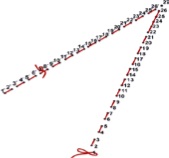 • Иголка с ниткой вставляется в т. 9 (с изнаночной стороны), опускается в т.24, затем из т. 24 в т.1.