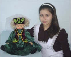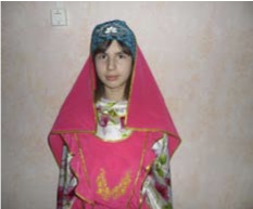 Я часто смотрю наши семейные альбомы. На некоторых фотокарточках вижу свою маму в национальной одежде. Ведь она 5 лет выступала на различных концертах с хором Казанского Государственного университета! А вот самая историческая фотокарточка. На меня смотрит детскими мамиными глазами маленькая девочка. На этом фото моя мама – пионерка с известным татарским композитором Сара ханум Садыйковой! Ведь Сара апа Садыйкову называют «Калфаклы сандугач!», что в переводе обозначает «Соловей в калфаке!» Из другой фотокарточки смотрит на нас бабушка – татарка в калфаке. Они познакомились с моей мамой через газету и долго переписывались. А вот на этой фотокарточке я сама! Тоже в калфаке.
