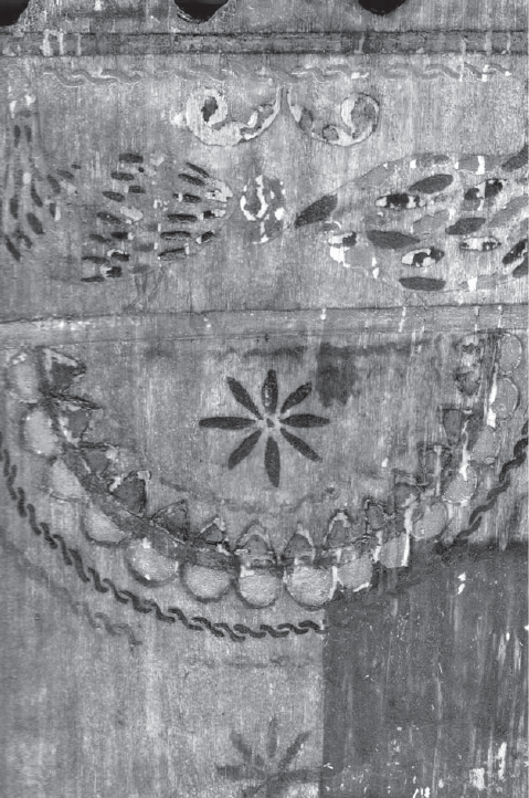 13. Прялка. Мастер Степан Амосов. Вторая половина – конец 1870-х годов. Фрагмент. Оборотная сторона лопаски. Собрание А.А. Германовича (Москва)