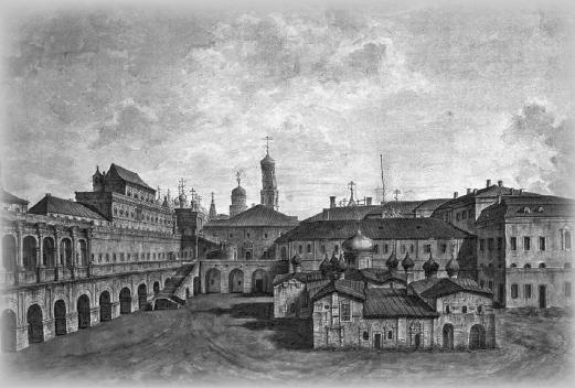 По соседству с вновь воздвигнутыми храмами располагался деревянный великокняжеский дворец Ивана Калиты. Никаких подробных известий о нем не сохранилось, но можно полагать, что это была большая постройка, состоявшая из ряда хором, связанных сенями, крыльцами, переходами в единое целое.