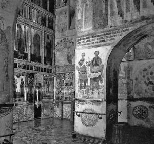 Дело Ивана Калиты продолжил его сын Семен Гордый. При нем в 1344 г. начались работы по росписи двух главных кремлевских храмов – Успенского и Архангельского соборов. В следующем году приступили к росписи собора Спаса на Бору, а в 1346 г. была расписана церковь Иоанна Лествичника. Таким образом, были расписаны все построенные при Иване Калите каменные кремлевские церкви. Тогда же для них были отлиты три больших и два малых колокола.