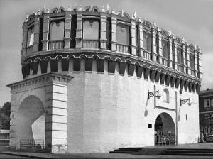 Но приступить сразу к возведению новых кремлевских укреплений было просто невозможно – в преддверии зимы горожане сначала должны были восстановить уничтоженные по жаром свои дома. Лишь через полгода после «великого пожара», в начале 1366 г., у москвичей появилась возможность начать строительство нового Кремля. Для строительства московских укреплений привлекались средства и силы не только великокняжеской казны, но и московского боярства. Об этом становится известным из анализа имен современных кремлевских башен. Еще в XIX в. ученые обратили внимание, что ряд из них носит двойные названия, первое из которых является более древним: Беклемишевская (Москворецкая), Свиблова (Водовзводная), Собакина (Угловая Арсенальная). Из документов XV в. выясняется, что еще несколько кремлевских башен также имели другие названия, ныне уже почти позабытые. Так, главная башня Кремля когда-то именовалась Фроловской, Константино-Еленинская называлась Тимофеевской, а Тайницкая – Чешковой.