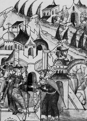 Княжеские междоусобицы на Руси нередко сопровождались вмешательством татар. Так произошло и во время «Дюденевой рати», т. е. набега татарского царевича Дюденя в 1293 г. Татары подошли к Москве, но, увидев хорошо укрепленную крепость, предпочли не штурмовать ее, а действовать хитростью. Они «московского [князя] Данила обольстиша, и тако въехаша в Москву». Город был разорен.