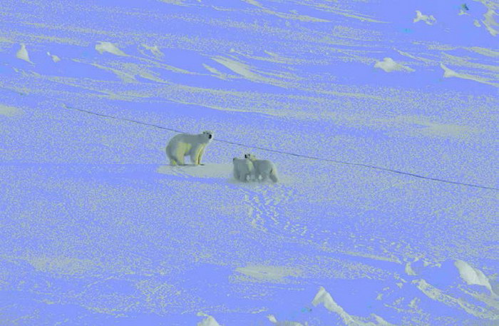 Рис. 9. Семья белых медведей – самка и два годовалых медвежонка